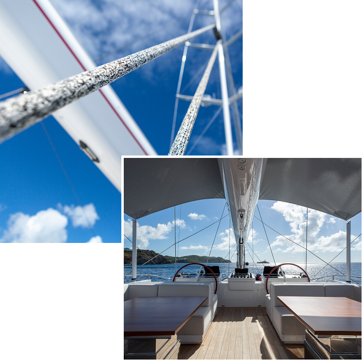 Red Dragon’s exterior spaces have been designed for one purpose: to make the most of every moment at sea. Wide teak decks offer room to move, stretch and breathe whether you are setting sail at dawn or watching the stars appear one by one after dinner.